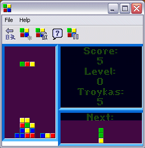 Igra risTrojka je nekakšna mešanica med Tetrisom in xTrojko (odtod tudi ime - tetRIS + xTROJKA = risTrojka). Igra je preprosta, njen cilj pa je zbrati cimvecje število vodoravnih ali navpicnih trojic kock v isti barvi. S tem dosežemo, da se zbrane kocke zbrišejo in prepustijo prostor naslednjim. V igralni prostor pada trojica kock, katerih barve so izbrane iz nakljucne kombinacije štirih osnovnih barv. V trojici kock se lahko pojavita najvec dve isti barvi. Padajoco trojico kock lahko premikamo levo ali desno, lahko pa jo tudi zavrtimo. Igra ima vec nivojev, z višanjem le-teh pa se povecuje hitrost padanja kock. Igre je konec, ko se igralni prostor zapolni do vrha. Igranje na zacetku igre je preprosto, za boljše rezultate pa je potrebno veliko vaje.